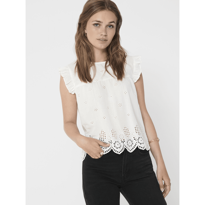 Only Onlsilla Life Sl Frill Top Cloud dancer