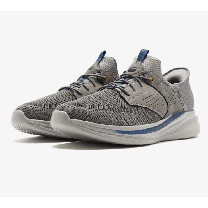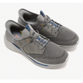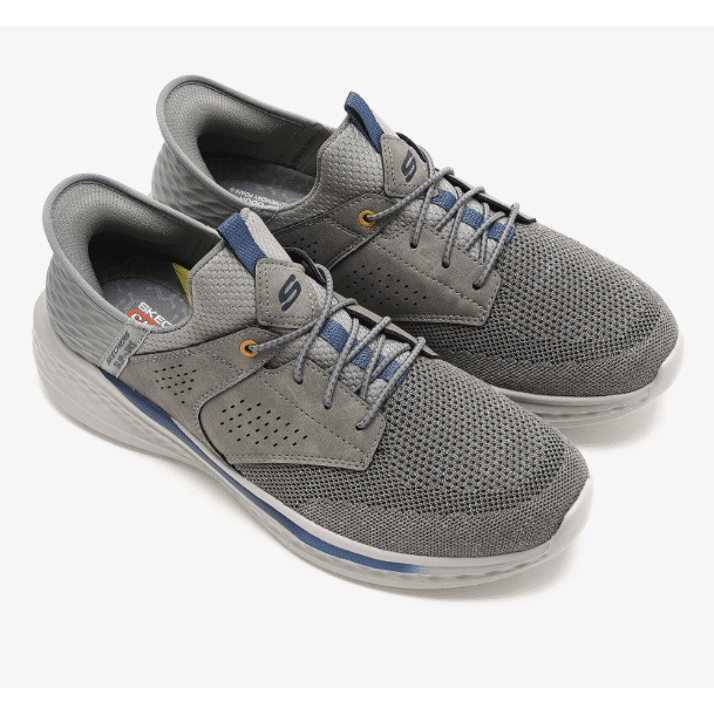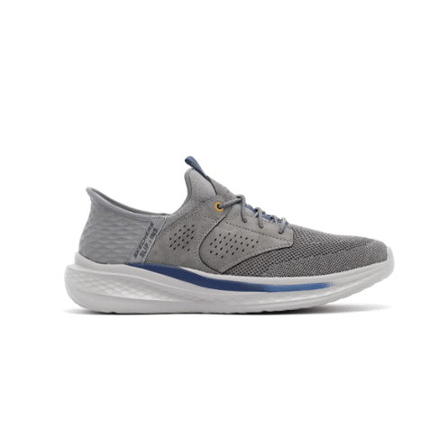 Profitez d'un confort optimal et d'une facilité d'enfilage avec les Skechers Slip-Ins® Relaxed Fit™ : Slade - Caster. Ce modèle à lacets élastiques est doté de notre technologie Heel Pillow™ et présente une tige en mesh et en matière synthétique sur une semelle intérieure Skechers Air-Cooled Memory Foam™ contenant du charbon de bois et un soutien Skechers Goga Mat Arch™.