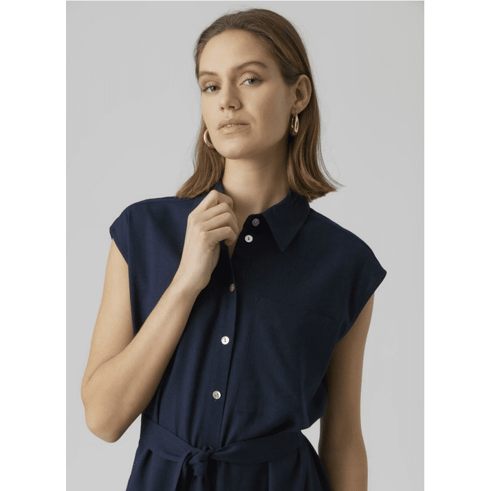 Vero Moda Vmmymilo Sl Calf Shirt Dress Navy Blazer