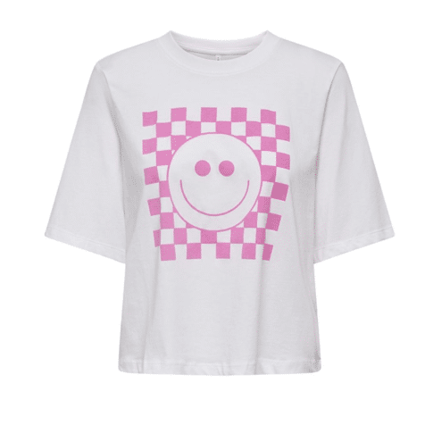 - Only Onlcarty Life Ss Tee Bright White Check Smiley