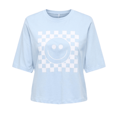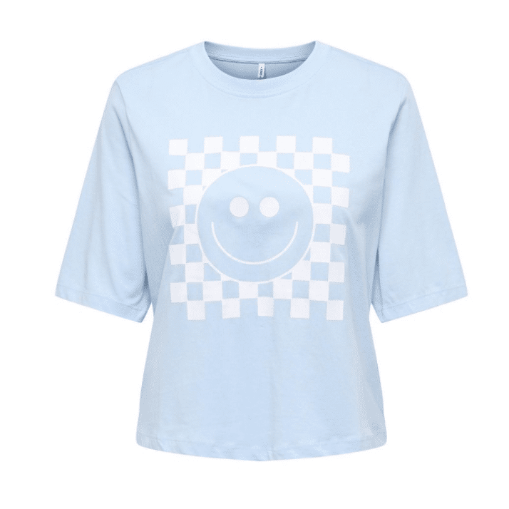 Only Onlcarty Life Ss Tee Cashmere Blue Check Smiley