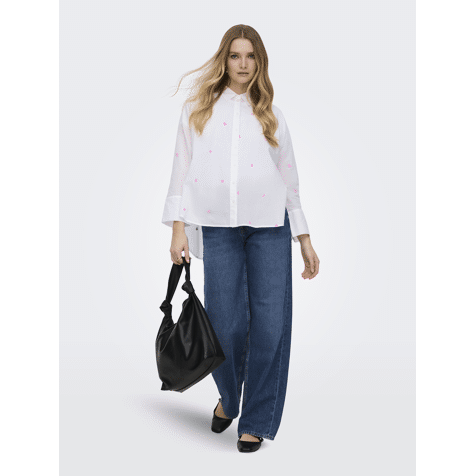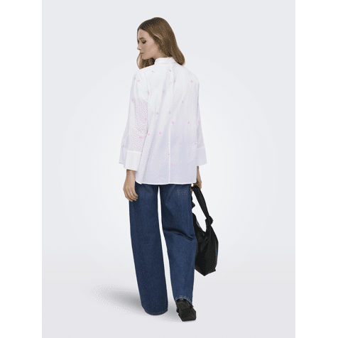 Only Onlnew Lina Grace Ls Emb Shirt Bright White Lavender