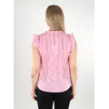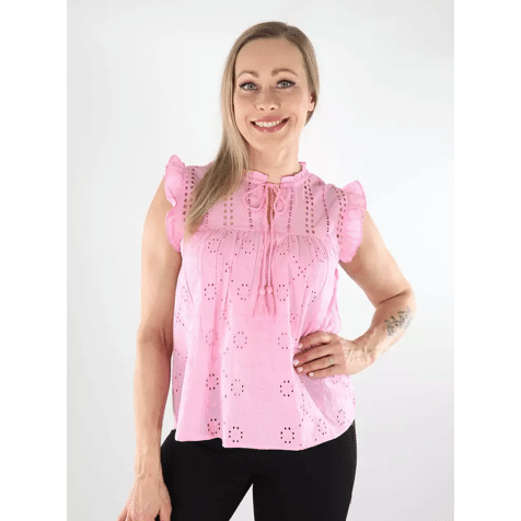 Verander je dagelijkse outfit in een handomdraai door een vrouwelijke top toe te voegen voor een zachte, elegante look. Katoen is gemaakt van natuurlijke vezels en is daardoor een zachte, ademende stof.Producttype: TopHalslijn: Ronde halsMouw: MouwloosSluiting: KoordsluitingExtra details: RuchesPasvorm: Normale pasvorm 100% biologisch katoen