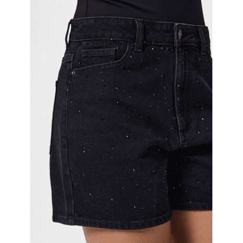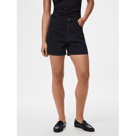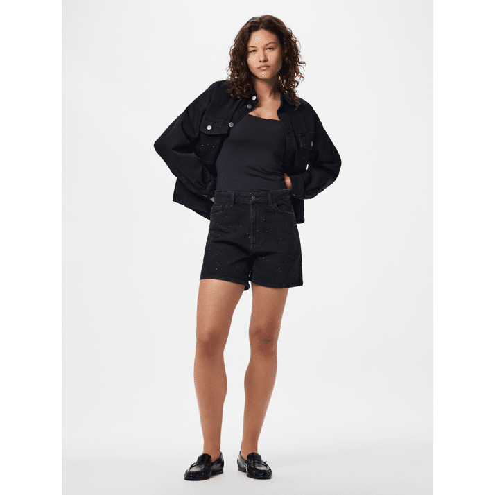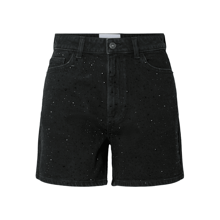 Pieces Pcgabi Hw Rhinestone Denim Shorts Black Denim