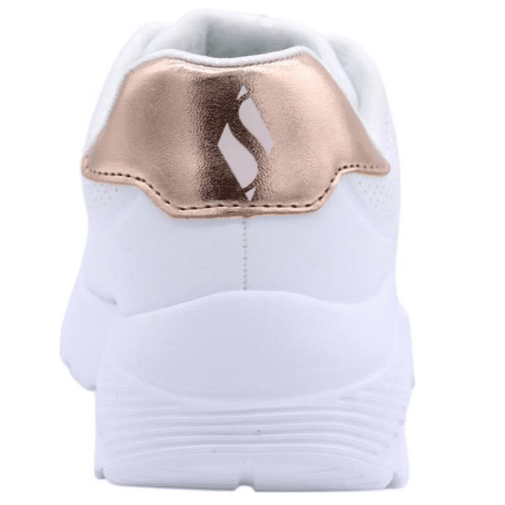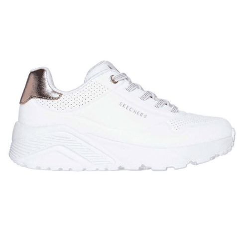 Til je sneakerstijl naar een hoger niveau met dempend comfort in de Skechers Street™ Uno Lite. Deze trendy sneaker heeft een bovenwerk van synthetisch duraleer met een metallic detail op een Skechers Air-Cooled Memory Foam®-binnenzool en een dempende platformzool. De schoen sluit met elastische veters en de Skechers aanpasbare sluiting.