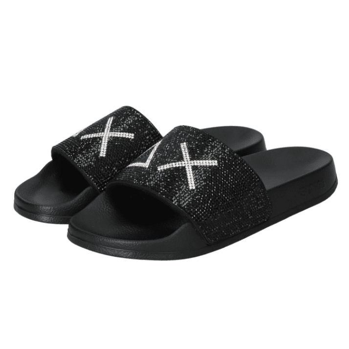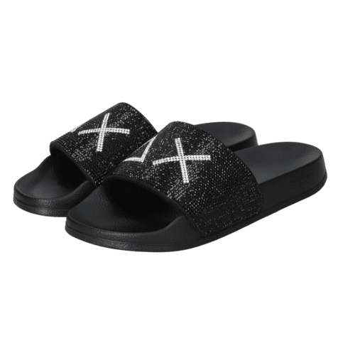 Dames Badslipper Slippers Strass Logo 11 Nero