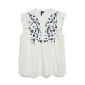 Producttype: TopHalslijn: V-halsMouw: Korte mouwenExtra details: Borduurwerk, ruchesPasvorm: Normale pasvorm50% katoen - in omzetting, 50% biologisch katoen