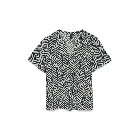 Basisstukken zijn onmisbaar in vrijwel elke kledingkast. Onze basic tops maken een outfit compleet en deze top is daarop geen uitzondering. Draag hem met een shacket, een comfortabele mom jeans en stoere laarzen voor een relaxte en coole look voor elke dag.Producttype: BlouseHalslijn: V-halsMouw: Korte mouwenMouwen: Wijde mouwenPrint: Print herhaald over het gehele oppervlak van het product.Pasvorm: Normale pasvorm 83% viscose - Livaeco by Birla Celluloseā¢, 17% gerecycled nylon