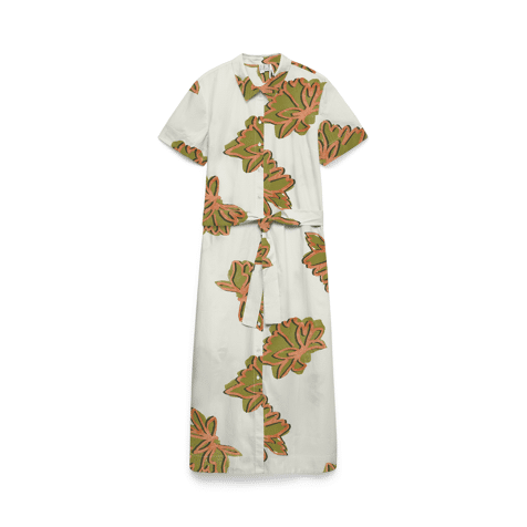 Producttype: OverhemdjurkHals: OverhemdkraagMouw: Korte mouwenSluiting: KnoopsluitingLengte/maat: Midi-lengteExtra details: Inclusief riemPrint: Print herhaald over het gehele oppervlak van het product.Pasvorm: Normale pasvorm100% katoen - biologisch