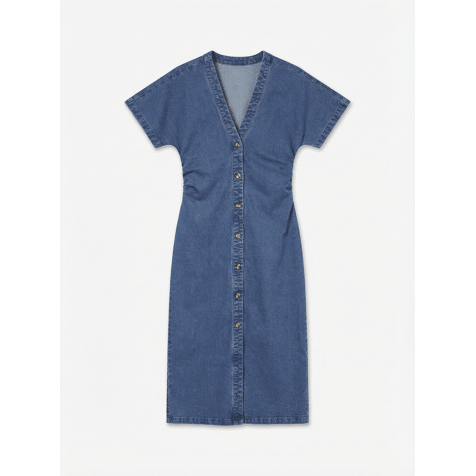 Een maxi-jurk per dag houdt alle problemen op afstand. Maxi-jurken zijn elegant en vrouwelijk, en deze is daarop geen uitzondering. Combineer hem met platte sandalen voor een luchtige zomerlook of draag er pumps met hakken bij voor een trendy avondlook.Producttype: SpijkerjurkHalslijn: V-halsMouw: Korte mouwenSluiting: KnoopsluitingLengte/maat: LangPasvorm: Slim Fit 73% katoen, 26% polyester, 1% elastaan